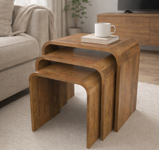 Gồm nhiều bàn nhỏ lồng vào nhau → tiết kiệm không gian, linh hoạt khi sử dụng.