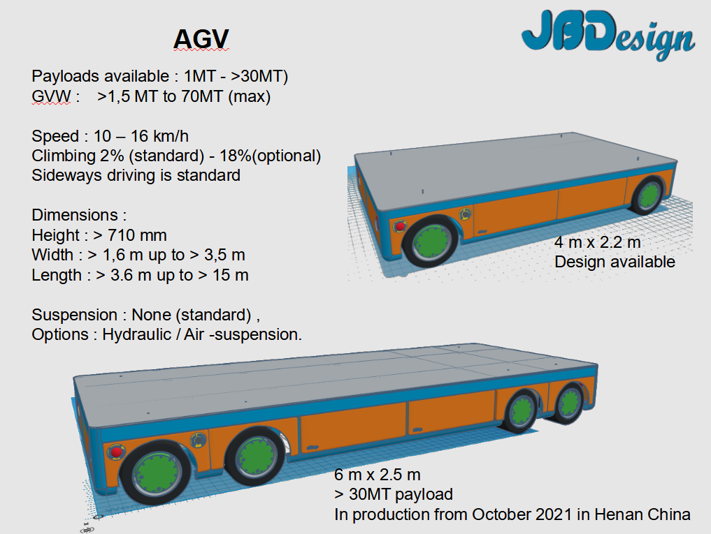 AGV 30 Ton Payload dịch sang tiếng Việt là:Xe Tự hành Không người lái (AGV) có Tải trọng 30 Tấn Phân tích và Ứng dụngMột AGV được thiết kế để xử lý tải trọng 30 tấn ($30,000 \text{ kg}$) là một robot vận chuyển vật liệu siêu nặng (Heavy-Duty AGV). Loại AGV này không phổ biến trong kho bãi thương mại thông thường (chỉ xử lý vài tấn), mà được sử dụng trong các ngành công nghiệp đòi hỏi khả năng nâng và di chuyển các cấu kiện lớn.1. Ứng dụng Chính:Công nghiệp Ô tô và Hàng không: Vận chuyển các khung gầm xe tải, thân máy bay, hoặc các dụng cụ lắp ráp lớn (jigs and fixtures) giữa các trạm sản xuất.Công nghiệp Năng lượng: Vận chuyển các turbine gió, máy phát điện, hoặc các cấu kiện lớn trong nhà máy điện.Công nghiệp nặng và Kim loại: Di chuyển cuộn thép lớn (steel coils) hoặc khuôn đúc (molds) nặng.2. Thiết kế Cơ khí Đặc trưng:Khung gầm: Khung thép gia cường cực kỳ chắc chắn để chịu được tải trọng tập trung và mô-men xoắn lớn.Hệ thống Truyền động: Thường sử dụng hệ thống truyền động bánh xe thủy lực hoặc điện công suất cao với nhiều bánh xe dẫn động (driven wheels) để phân tán tải trọng và đảm bảo lực kéo.Hệ thống Bánh xe: Có thể sử dụng bánh xe Mecanum (nếu yêu cầu di chuyển đa hướng) hoặc hệ thống bánh xe đa điểm (multi-wheel systems) để giảm áp lực lên sàn nhà máy.Nguồn điện: Thường sử dụng ắc quy lithium-ion dung lượng cao hoặc ắc quy axit-chì chịu tải nặng, với hệ thống sạc tự động hoặc đổi pin nhanh.3. Công nghệ Dẫn đường:Do tải trọng lớn và yêu cầu an toàn cao, AGV 30 tấn thường sử dụng các công nghệ dẫn đường chính xác:Dẫn đường Laser (LGV): Phổ biến nhất cho các AGV lớn vì độ chính xác và khả năng thay đổi tuyến đường dễ dàng.Kết hợp: Sử dụng kết hợp LiDAR để định vị (Localization) và Safety Laser Scanner để đảm bảo an toàn.Loại AGV này yêu cầu thiết kế tùy chỉnh (custom-made) và các nhà sản xuất chuyên về các giải pháp tự động hóa công nghiệp nặng