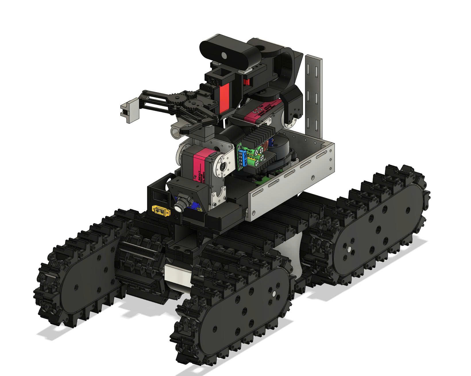 Robot Bánh xích với 4 Cánh tay Lật (Linh hoạt), sử dụng Hệ điều hành ROS Các cánh tay lật này là chìa khóa để robot vượt qua các chướng ngại vật phức tạp như cầu thang hoặc đống đổ nát. Thiết kế thường bao gồm: Thiết kế Cơ khí Cánh tay Lật (Flipper Mechanism Design)Cơ cấu Truyền động (Drive Mechanism):Sử dụng động cơ DC hoặc Servo công suất cao để điều khiển góc quay của cánh tay lật.Thường kết hợp với hộp giảm tốc để tăng mô-men xoắn (torque), cho phép cánh tay lật nâng toàn bộ trọng lượng của robot lên.Liên kết (Linkage):Cánh tay lật thường là các chi tiết làm từ hợp kim nhôm hoặc vật liệu composite nhẹ nhưng có độ bền cao.Thiết kế đảm bảo cánh tay có thể xoay một góc rộng, thường là+- 90 độ hoặc hơn, so với thân robot.Khớp nối (Joints):Sử dụng khớp quay (revolute joints) chịu lực tốt. Các khớp này phải được gia công chính xác để chịu được các lực tác động lớn khi robot leo trèo hoặc chống đỡ.