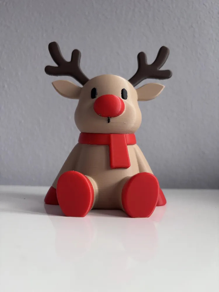 Đây là một món đồ trang trí hình hươu Rudolph – chú tuần lộc mũi đỏ nổi tiếng trong mùa Giáng Sinh. Mô hình được thiết kế để treo lên cây thông hoặc trang trí không gian, có kích thước nhỏ gọn và mang phong cách lễ hội ấm áp, rất phù hợp cho trang trí Giáng Sinh.