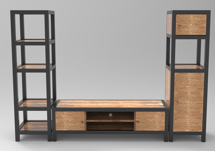 Kết hợp khung sắt chịu lực và các mặt gỗ để đặt đồ. Thiết kế này vừa bền vừa mang tính thẩm mỹ hiện đại, thường dùng trong nội thất công nghiệp.