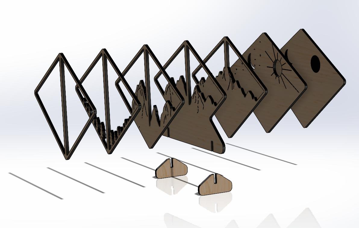 Các lớp gỗ được cắt bằng laser và xếp chồng lên nhau để tạo chiều sâu, yêu cầu độ chính xác cao trong thiết kế và gia công.