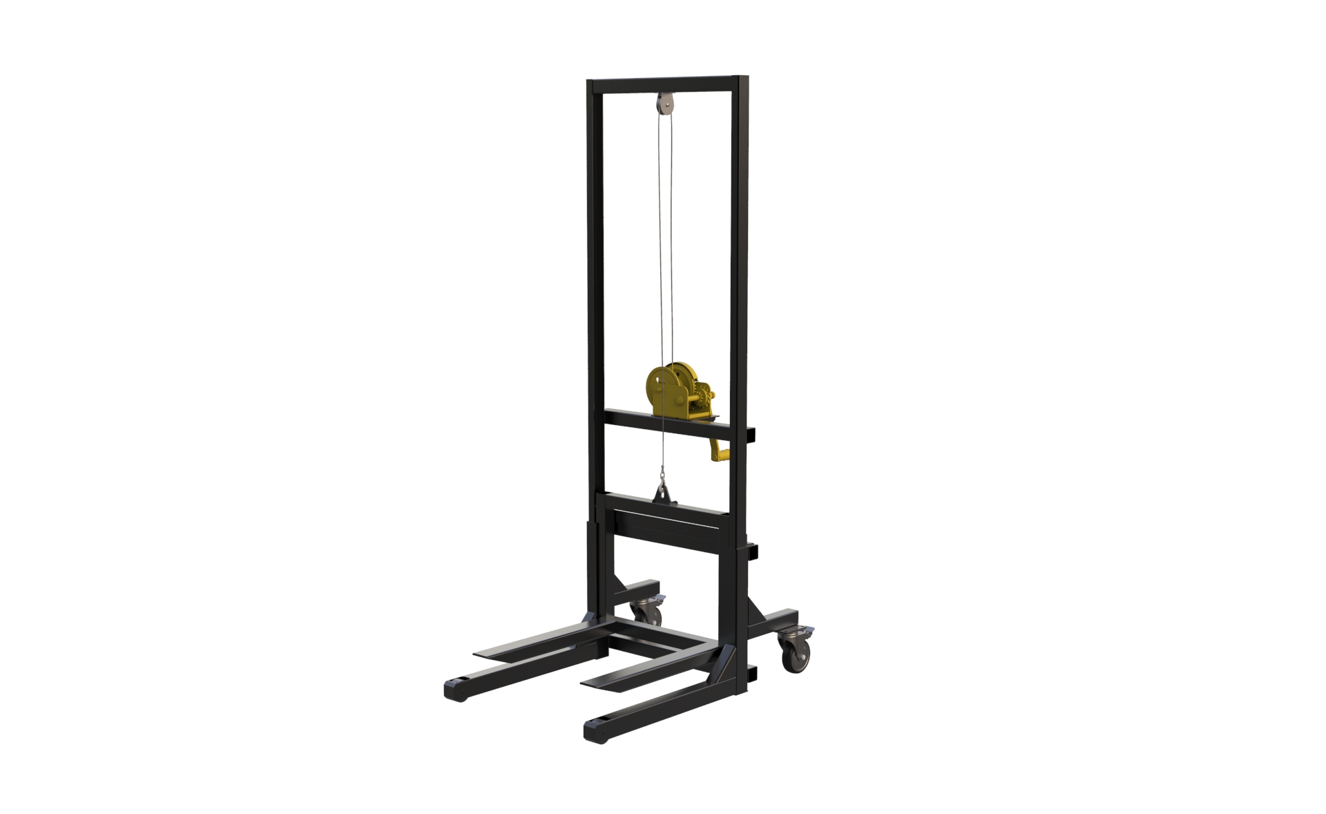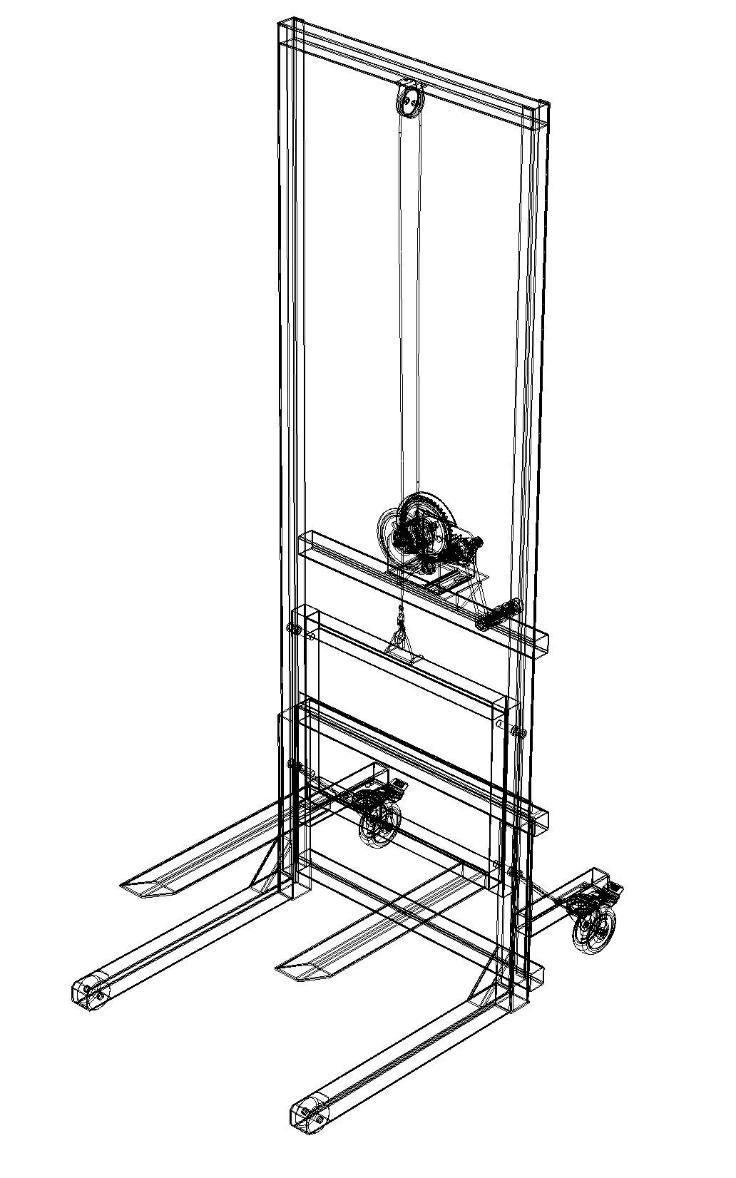 Cơ chế Nâng: Sử dụng bơm kích thủy lực bằng tay cầm hoặc bàn đạp chân để nâng càng nâng dọc theo cột nâng (mast).